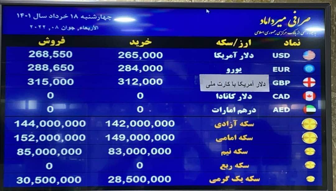 هر دلار کانادا نیز ۳۳ هزار و ۴۶۸ ریال، دلار نیوزیلند ۲۷ هزار و ۱۹۰ ریال، راند آفریقای جنوبی ۲ هزار و ۷۳۵ ریال، لیر ترکیه ۲ هزار و ۵۰۴ ریال، روبل روسیه ۶۷۷ ریال، ریال قطر ۱۱ هزار و ۵۳۹ ریال، یکصد دینار عراق ۲ هزار و ۸۷۹ ریال و لیر سوریه ۱۷ ریال قیمتگذاری شد.