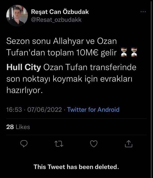 روز گذشته «اوزبوداک» مدیر شبکههای اجتماعی فنرباغچه پیامی را در توییتر خود منتشر و اعلام کرد فنرباغچه با فروش اللهیار و اوزان توفان مبلغ ۱۰ میلیون یورو به دست میآورد.