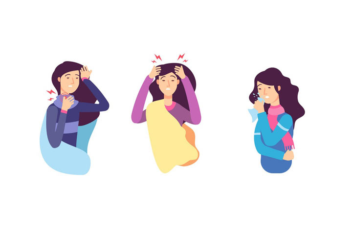 آب و هوا، مانند بارندگی های ناگهانی یا تغییر دما از محیط های گرم به محیط های خنک و بالعکس، می تواند فرد را به بیماری های تنفسی مانند سرفه و سرماخوردگی مبتلا کند. سایر علائم آنفولانزا شامل تب، درد عضلانی و سردرد است.