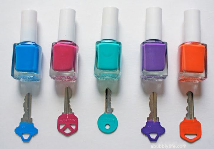 برای اینکه ، کلیدهای یکسان شما را گیج نکند، میتوانید با استفاده از لاک ناخن هر کدام را به رنگ متفاوتی رنگ کنید.