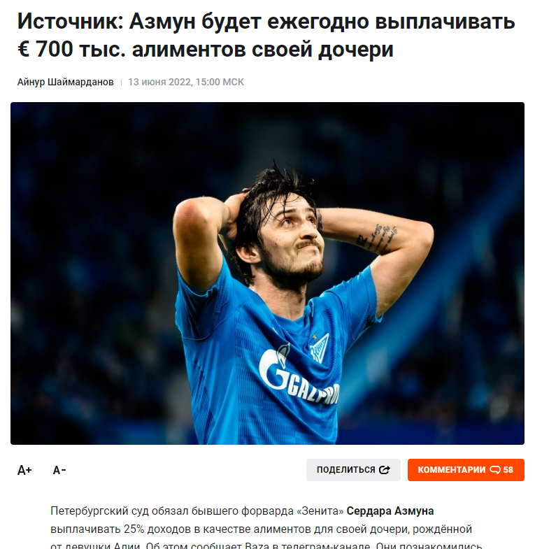 طبق اعلام رسانههای روسی، سردار آزمون مهاجم سابق تیم زنیت به پرداخت ۷۰۰ هزار یورو محکوم شده است.