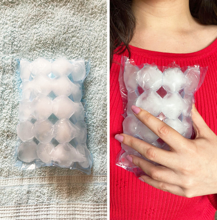 یک چیز سرد، مانند کیسه یخ را روی سینه خود قرار دهید