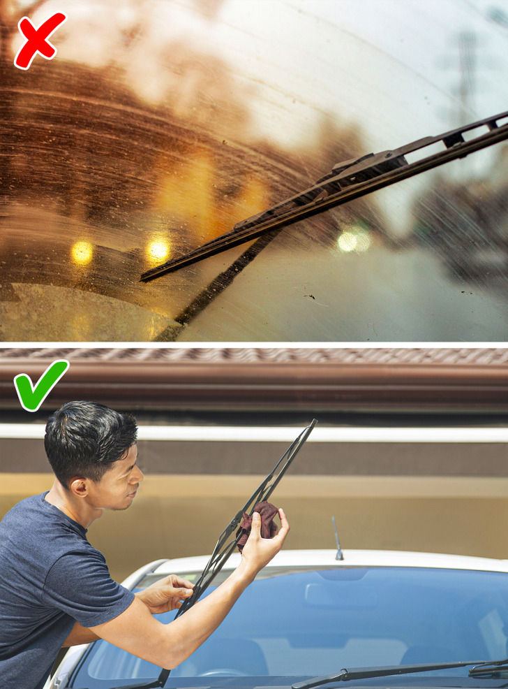 هنگام شستن ماشین، برف پاک کن شیشه جلو را فراموش نکنید. خاک ، گرد و غبار و حتی شن میتواند در تیغههای برف پاک کن، جمع شود و شیشه را خراش دهند .