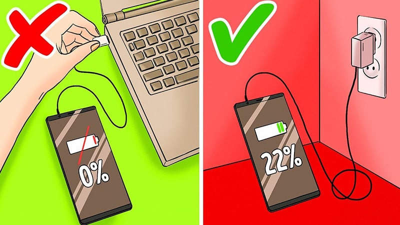 توصیه می شود تا حد امکان از لپ تاپ و کامپیوتر برای شارژ کردن گوشی استفاده نکنید!