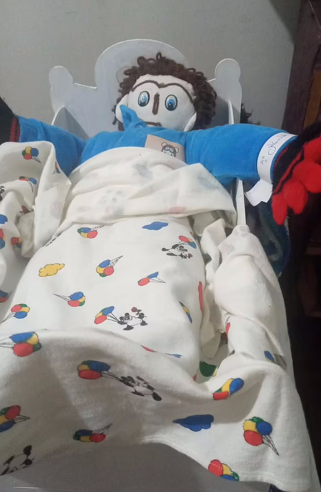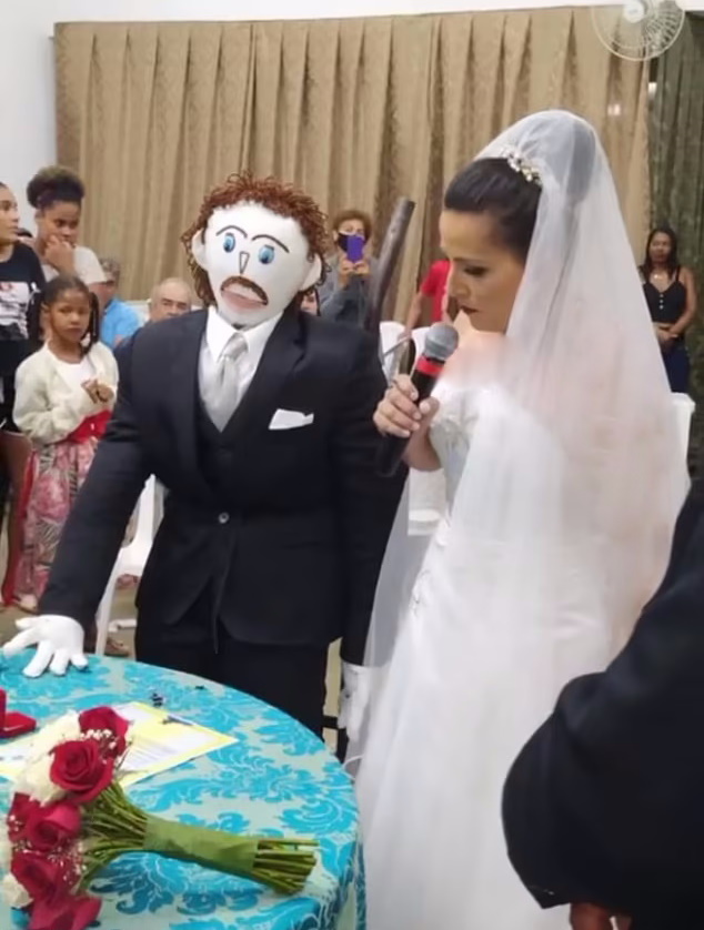 مادرش، مارسلو، عروسک پارچه ای را ساخت و آنطور که این زن ۳۷ ساله میگوید عشق در یک نگاه برایشان اتفاق افتاد. اما این زوج که نمیخواستند بدون ازدواج بچه دار شوند، تصمیم به برگزاری مراسمی گرفتند و در حضور ۲۵۰ نفر ازدواج کردند.