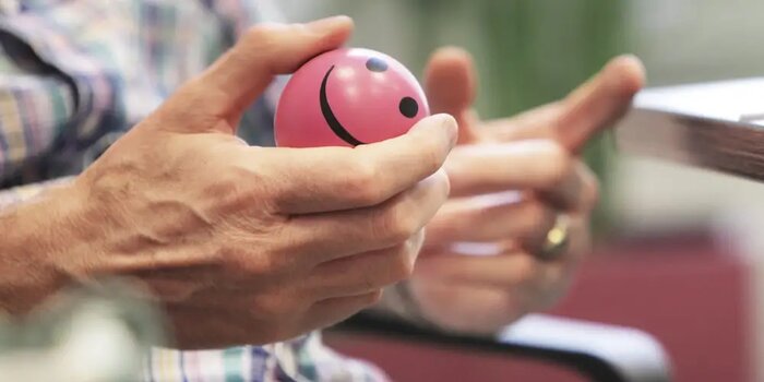 - با چیزی مانند حلقه یا توپ استرس در دستان خود بازی کنید.