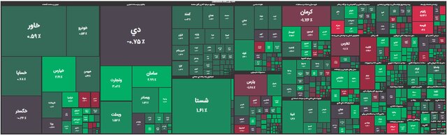 نمادهای پتروشیمی زاگرس (زاگرس)، پلیمر آریا ساسول (آریا)، بهمن دیزل (خدیزل)، بیمه پاسارگاد (بپاس)، تولیدات پتروشیمی قائد بصیر (شبصیر)، گروه سرمایه گذاری میراث فرهنگی (سمگا) با تاثیر مثبت بر شاخص فرابورس همراه بودند.