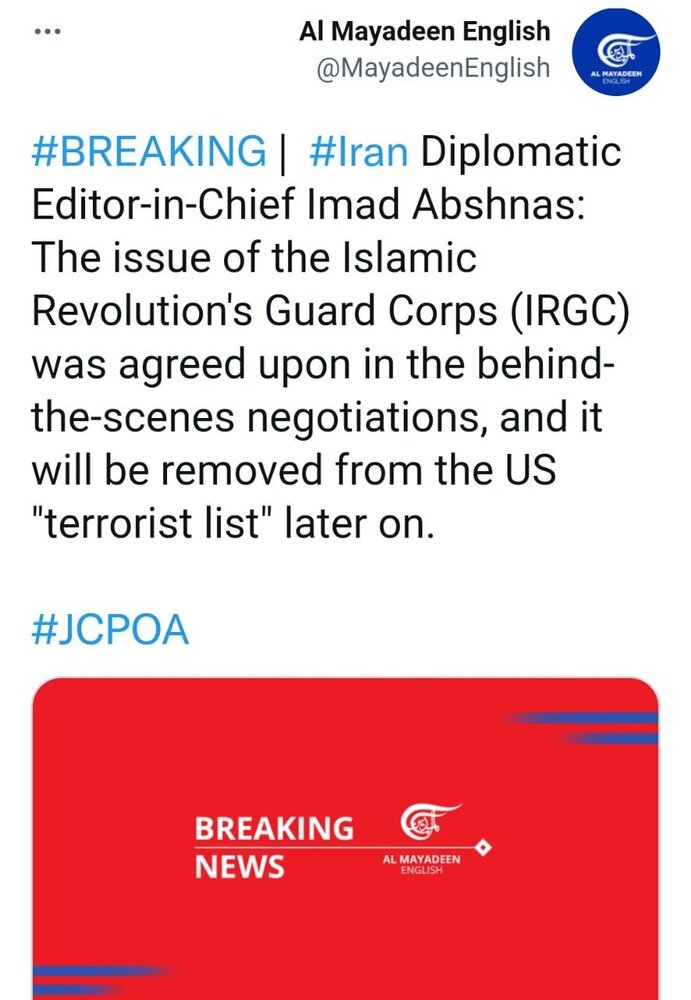 ادعای «المیادین» در «خبر فوری» / توافق با خروج سپاه از فهرست آمریکایی گروه های تروریستی