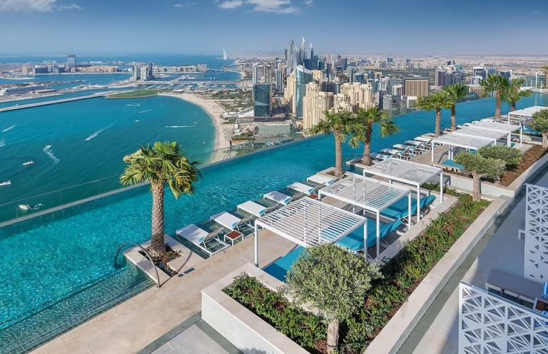 تعجب نخواهید کرد اگر بدانید که دبی رکورد دار استخر روی بام است. هتل دیدنی آدرس بیچ ریسورت (Address Beach Resort) دارای مرتفعترین استخر جهان در یک ساختمان است که با تقریباً ۲۹۴ متر ارتفاع، در طبقه ۷۷ قرار دارد. این استخر با طول ۹۱ متر و عرض ۱۵ متر، تقریباً دو برابر یک استخر در مسابقات المپیک است.