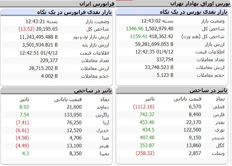 شاخص فرابورس نیز امروز بیش از ۱۳ واحد کاهش داشت و به ۲۰ هزار و ۱۹۵ واحد رسید.