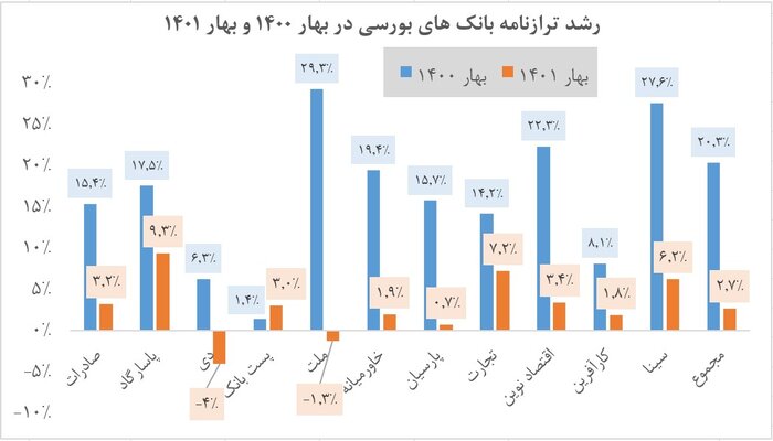 همانطور که مشاهده میشود رشد ماهانه تسهیلات بانکهای بورسی طی سه ماه ابتدایی سال جاری به مراتب کمتر از سه ماه ابتدایی سال گذشته است. کاهش رشد تسهیلات بانکها که عامل مهمی در رشد حجم نقدینگی در کشور است، اثرگذاری مثبت سیاست بانک مرکزی در کاهش شتاب رشد نقدینگی را نشان میدهد. لازم به توضیح است که علت بررسی نشدن ترازنامه بانکهای غیر بورسی، در دسترس نبودن اطلاعات آنها بوده است.