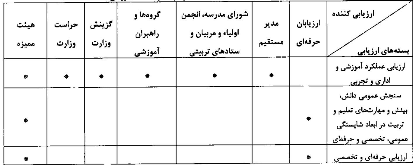 جدول شماره 2 مراجع ارزیابی کننده در هر یک از بستههای ارزیابی