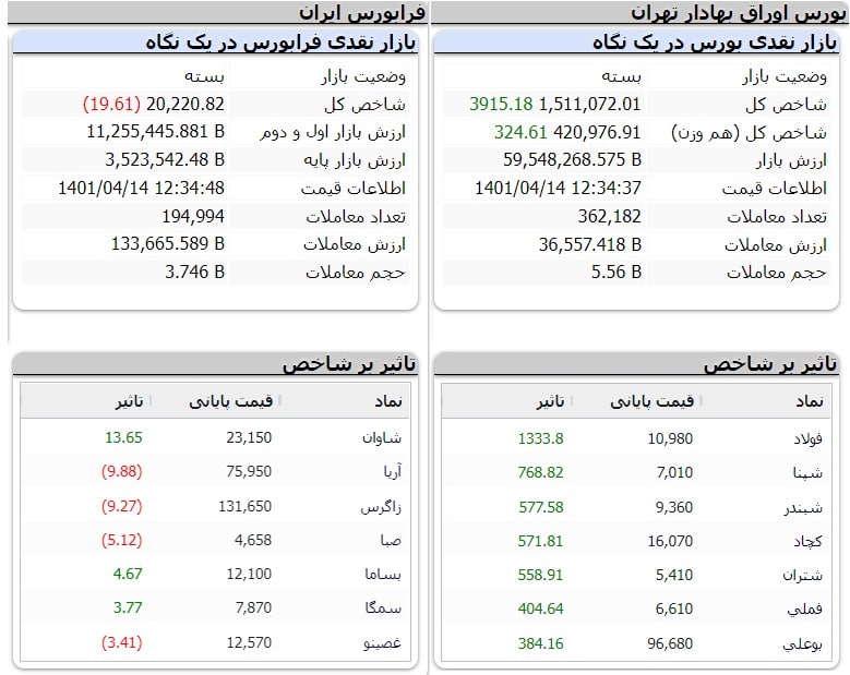 آخرین وضعیت شاخص فرابورس