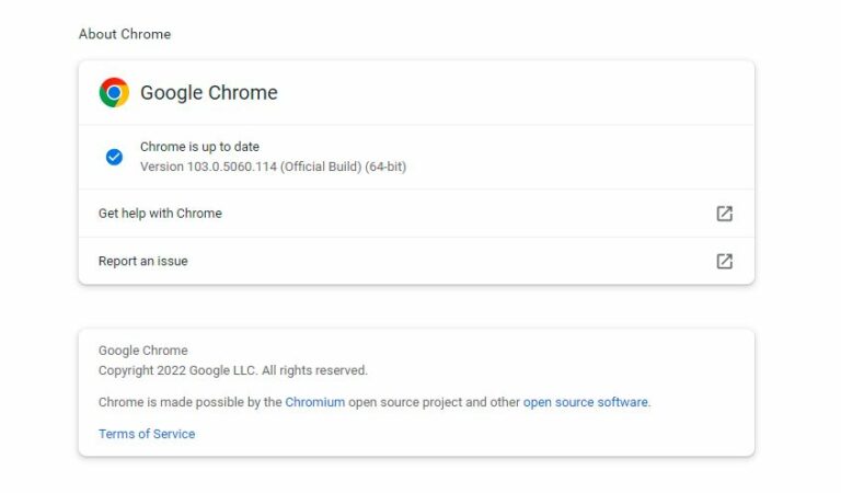 اگرچه کروم روی مک و ویندوز اغلب به صورت خودکار بروزرسانی میشود، اما برای آپدیت دستی میتوانید روی آیکون سه نقطه در گوشه سمت بالای کروم کلیک کنید و در منوی Help، به بخش About Chrome بروید. احتمالا مدتی طول میکشد تا جدیدترین نسخه (103.0.5060.114) دانلود شود و در نهایت باید روی گزینه Relaunch کلیک کنید تا کروم ریستارت شود.