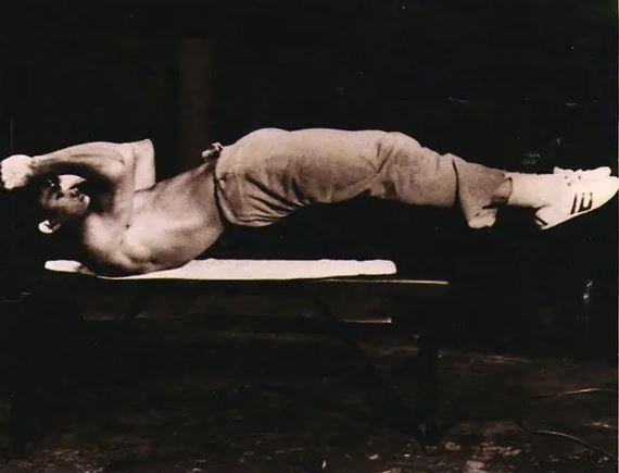 ۲- تصویر زیر بروس لی را در حال اجرای «پرچم اژدها» نشان می دهد. موقعیتی که گفته می شود او می توانست بیش از ۳۰ دقیقه در آن حالت بماند.توانایی های بروسلی غیر قابل انکار است