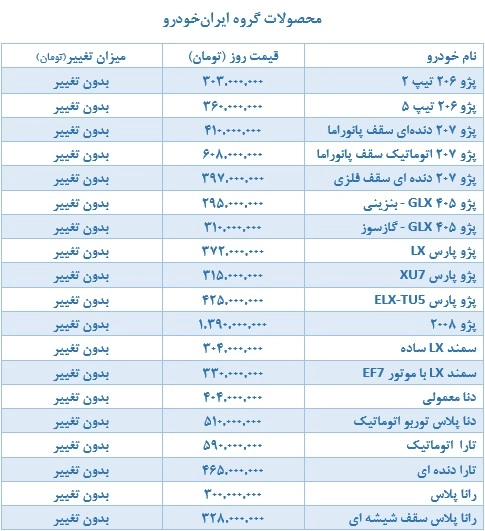 رانا پلاس بدون تغییر ۳۰۰ میلیون تومان معامله می شود. این خودرو در نسخه با سقف شیشه ای هم بدون تغییر بود و ۳۳۰ میلیون تومان قیمت خورد.