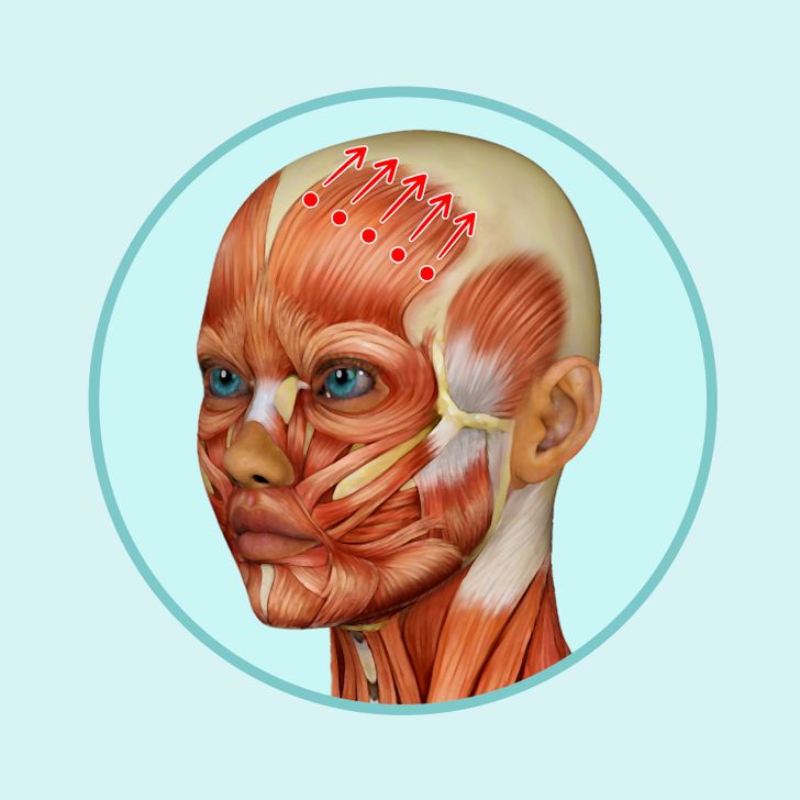 موهایتان را بلند کنید و از دو طرف سر، یک سانت بالاتر از گوشها، حرکت پوست سر را احساس کنید و موها را کمی به سمت بالا بکشید. این حالت را حفظ کنید. برای افزایش کشش پوست صورت، سر را کمی به جلو خم کنید و با دستان خود در جهت عقربههای ساعت و خلاف جهت عقربههای ساعت حرکات دایرهوار انجام دهید.