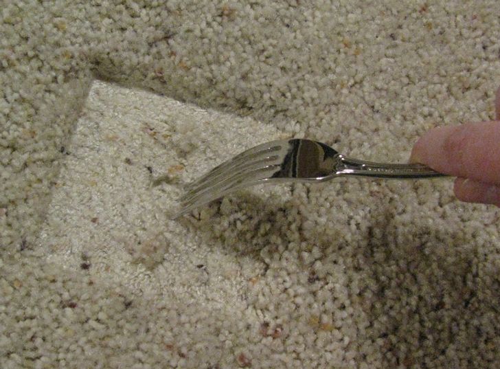 از یک چنگال معمولی برای از بین بردن رد فرش استفاده کنید.