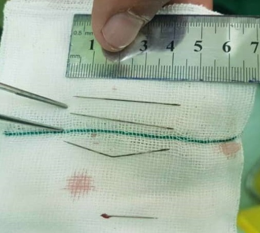 به گزارش سایت طلا، یکی از این سوزنها که از نوع سوزن خیاطی بودند به ابعاد ۴ سانتیمتر در بطن راست وارد شده و 3 مورد دیگر در جدار قفسه سینه بود که باعث آسیب این ناحیه شده بود