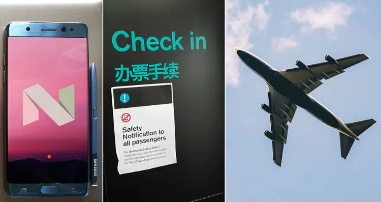 ۸- از آنجایی که اداره راه و ترابری ایالات متحده در سال ۲۰۱۶ وجود گوشی های سامسونگ گلکسی نوت ۷ را در هواپیماها ممنوع کرد، مسافران در صورتی که این گوشی را همراه خود به هواپیما بروند ممکن است با ۱۷۹,۹۳۳ دلار جریمه و ده سال زندان روبرو شوند