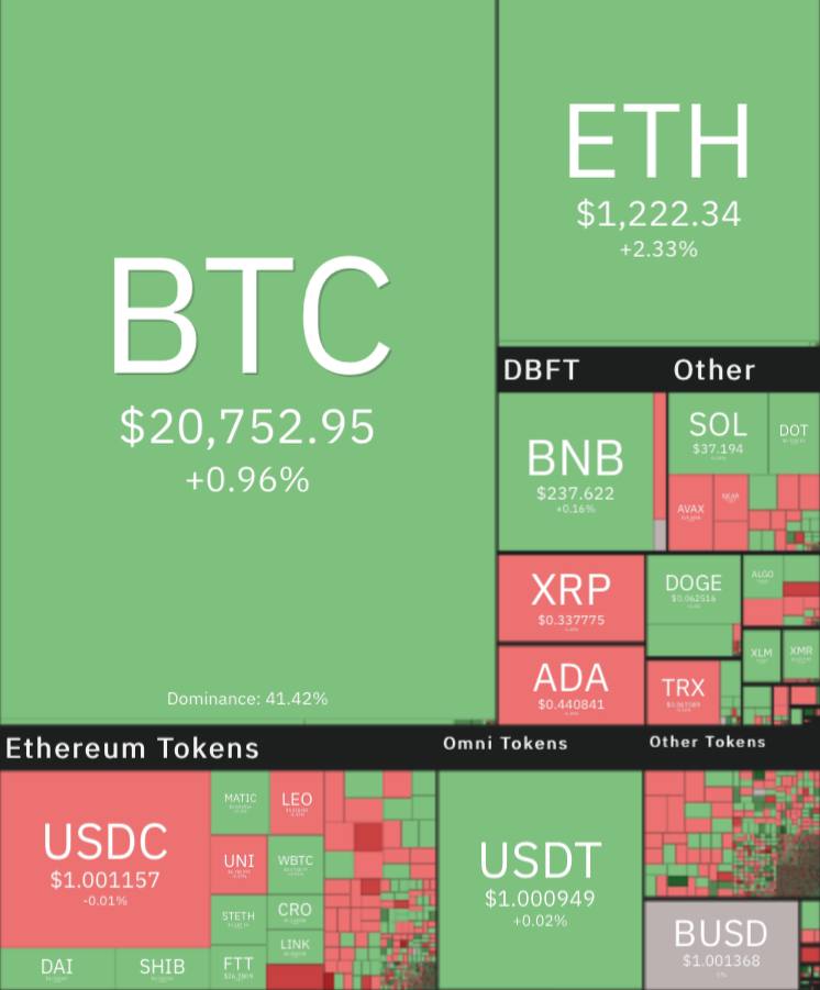 بیت‌کوین با رشد حدود ۱ درصد به قیمت ۲۰ هزار و ۷۵۲ دلار و اتریوم با افزایش بیش از ۲ درصد به قیمت هزار و ۲۲۲ دلار معامله می‌شوند.