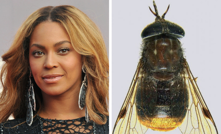 آدم ها روش های مختلفی برای تحسین سلبریتی ها دارند و وقتی محققی به نام برایان لسرد نوعی مگس کشف کرد که موهایی طلایی رنگ روی پشتش دارد، با خود فکر کرد که آنقدری «جذاب» (Bootylicious / نام یکی از آهنگ های بیانسه) هست که نام خواننده ی این آهنگ را روی آن بگذارد. نام کامل این حشره Scaptia (Plinthina) beyonceae است.
