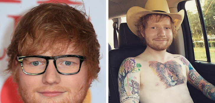 ۸- اد شیرن یک خالکوبی بزرگ به شکل شیر روی قفسه سینه اش دارد