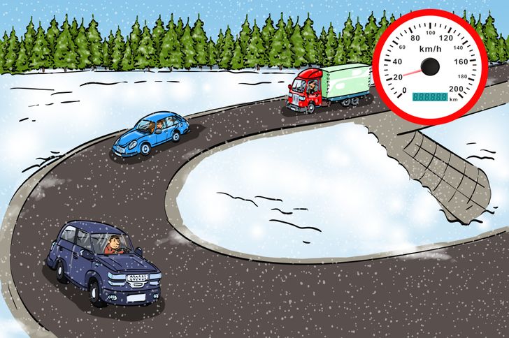 اگر در زمستان در حاشیه جاده با یک تپه برفی روبرو شدید، فرمان را در جهت مخالف نچرخانید. باید فرمان را به همان جهت بچرخانید و با فشار دادن مداوم گاز به جاده برگردید.