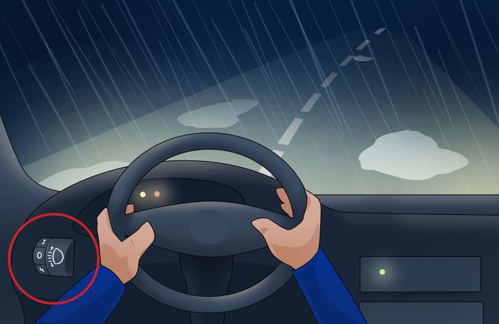 هنگام بارندگی از چراغهای مه شکن عقب استفاده نکنید زیرا میتوانند چراغهای ترمز خودروی شما را بپوشانند و در نتیجه رانندگان پشت سر شما را گیج کنند. همچنین، وقتی به یک گودال بزرگ رسیدید، بهتر است ماشین را جلوی آن متوقف کنید و سعی کنید آن را اندازه بگیرید تا مطمئن شوید که میتوانید از آن عبور کنید.