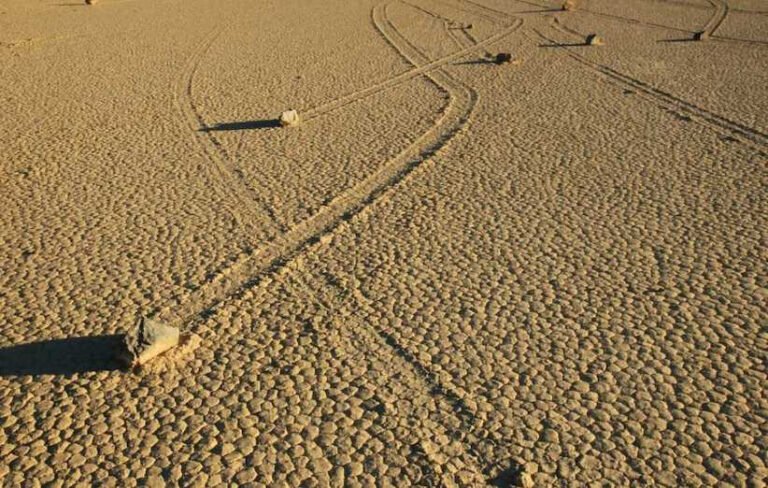 سنگهای روان پدیدهی عجیب زمینشناسی است که در آن سنگها روی یک زمین صاف به صورت خودکار، بدون دخالت هیچ جانور یا انسانی، حرکت میکنند. جالب است بدانید این مسیرها بسیار طولانی هستند و نمیتوان آن را حرکتی اتفاقی دانست. محققان علت این پدیده را یخ بستن رطوبت هوا و آب موجود در منطقه در روزهای سرد و آب شدن آن در روزهای آفتابی میدانند. لایهی نازک یخ زیر سنگها لایهای شناور ایجاد میکند و وقتی باد شدید میوزد، سنگها روی لایهی یخ حرکت میکنند. مسیر حرکت این سنگها در پارک ملی درهی مرگ در کالیفرنیا و در لیتل باتی کلر پلایا در نوادا کاملا قابل مشاهده است.
