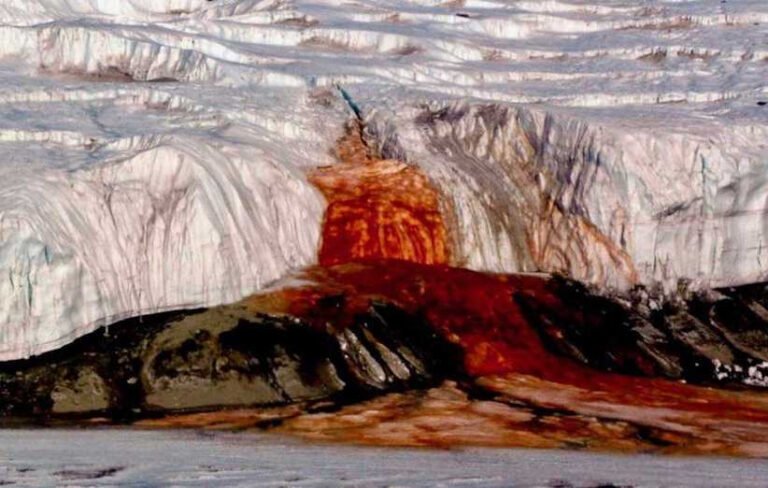 در سال ۱۹۱۱ در بخش شرقی قطب جنوب، در درهی خشک McMurdo، آبشاری به رنگ خون کشف شد. افرادی که برای اولین بار این پدیدهی عجیب را دیده بودند آن را شبیه به صحنهی فیلمهای ترسناک توصیف کردند. ابتدا محققان عنوان کردند که وجود جلبکهای خاصی باعث قرمز شدن آب دریاچه میشود اما در تحقیقاتی که در سال ۲۰۱۷ در دانشگاه آلاسکا فربنکس انجام شد مشخص شد دلیل قرمز بودن رنگ آب این دریاچه و آبشار، وجود آهن اکسید شده در آب شور است.