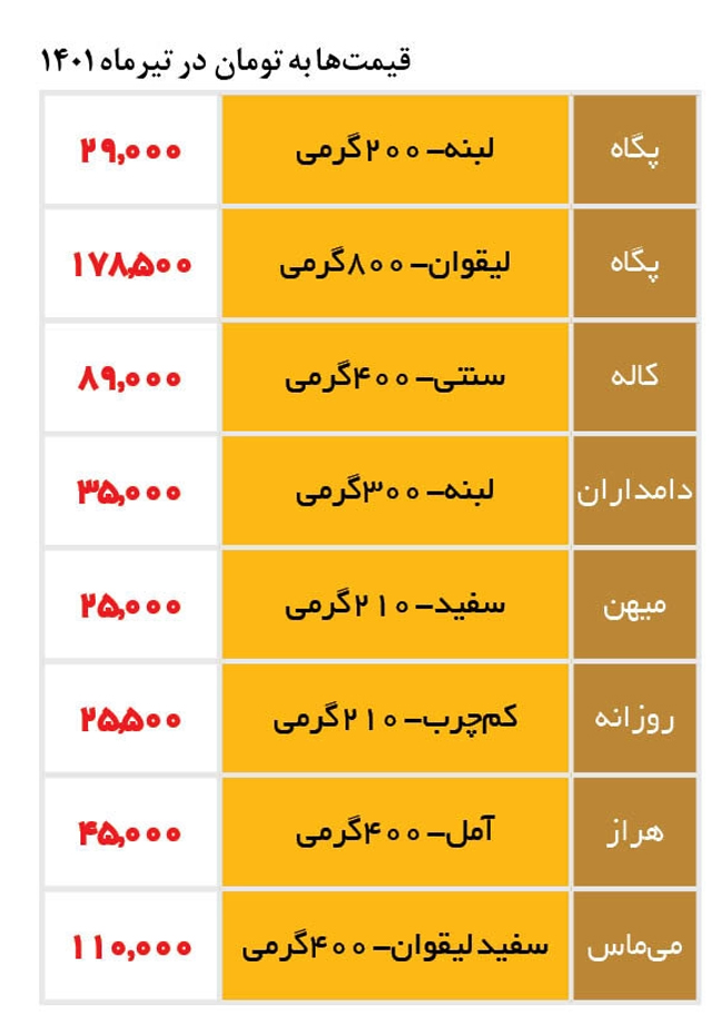 قیمت پنیر در تیرماه امسال روند باثباتی را پشت سر گذاشته است.