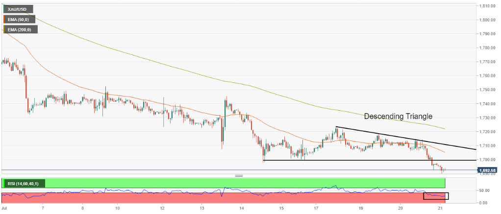 قیمت طلا در مسیر نزولی خود حمایت ۱۶۹۷ دلاری را دارد که برای افت بیشتر نیاز دارد تا به شکل پایداری در زیر این عدد تثبیت گردد. هر گونه افت بیشتر می تواند قیمت طلا را به سمت پایین ترین قیمت یک ساله آن در عدد ۱۶۸۷ دلار سوق دهد که پایین ترین سطح پشتیبانی برای فلز زرد به شمار می رود.