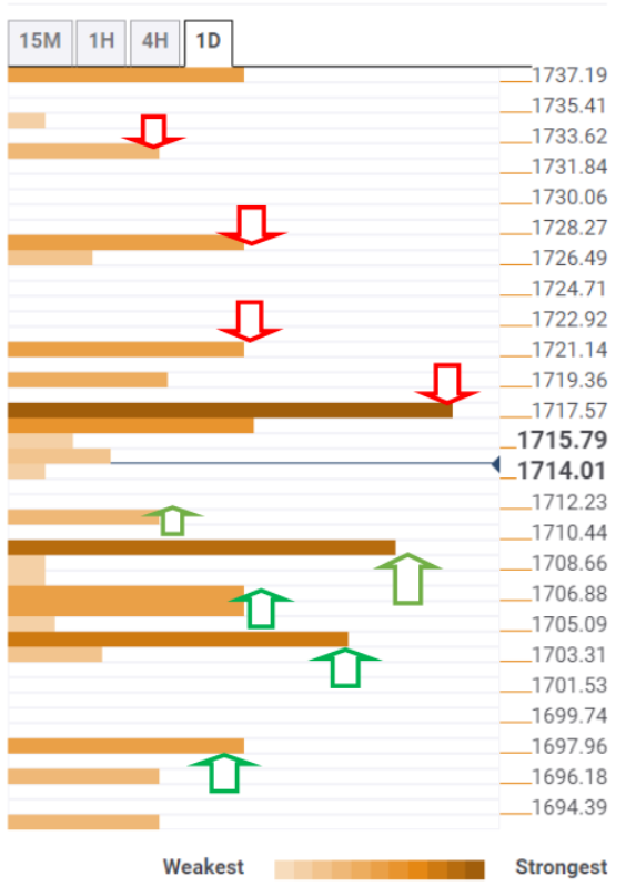 از طرف دیگر طلا در مسیر نزولی ابتدا در نقطه ۱۷۱۱ دلار حمایت می شود. در صورتی که قیمت طلا به افت خود ادامه دهد در نقطه ۱۷۰۹ دلار پشتیبانی خواهد شد که یک مرز حساس برای فروشندگان به شمار می رود. پایین تر از آن نیز طلا در سه سطح ۱۷۰۶، ۱۷۰۴ و در نهایت ۱۶۹۸ دلار حمایت خواهد شد.