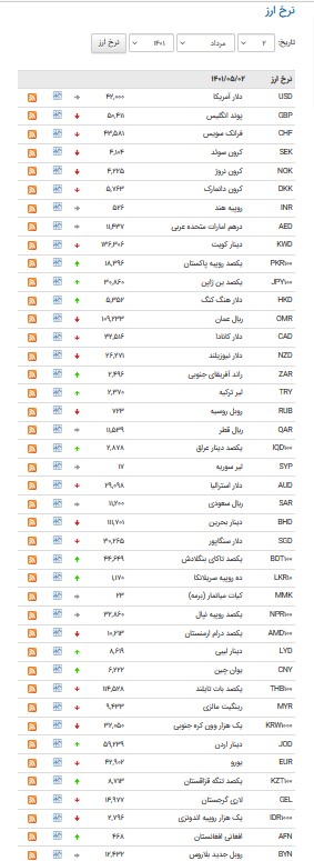 بانک مرکزی امروز، یکشنبه (۲ مرداد)، نرخ رسمی ۴۶ ارز را اعلام کرد که بر اساس آن نرخ ۱۳ ارز افزایش و نرخ ۲۲ ارز کاهش یافت. نرخ باقی ارزها ثابت ماند.