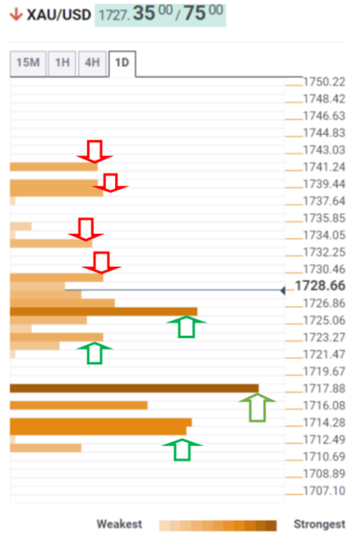 تحلیل تکنیکال طلا نشان می دهد که قیمت طلا به دنبال حرکتی پایدار بالاتر از فیبوناچی 38.2 درصد در عدد 1730 دلار است. هدف صعودی بعدی در فیبوناچی 23.6 درصد یک روزه در 1733 دلار مشاهده می شود.