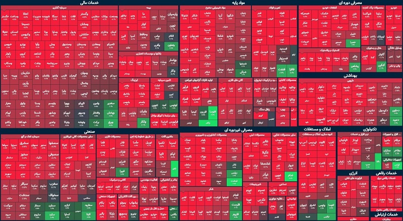 امروز همه شاخصهای بورس قرمز شدند، به گونهای که شاخص کل و شاخص قیمت با معیار وزنی - ارزشی 1.6 درصد افت کردند. این دو شاخص با معیار هموزن 2.2 درصد کاهش یافتند. شاخص آزاد شناور 1.6 درصد کاهش یافت. شاخص بازار اول بورس 1.9 درصد کاهش یافت و شاخص بازار دوم بورس 1.3 درصد افت کرد.