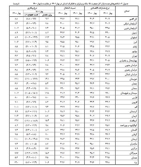 به گزارش سایت طلا ، مطابق آخرین آمار مرکز آمار ایران نتایج طرح آمارگیری نیرویکار بهار 1401 بیانگر این است که 9.2 درصد از جمعیت فعال (شاغل و بیکار)، بیکار بودهاند. بررسی روند تغییرات نرخ بیکاری حاکی از آن است که این شاخص، نسبت به فصل مشابه در سال قبل ( بهار 1400) ،0.4 درصد افزایش یافته است.
