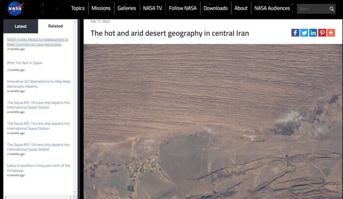 ناسا: جغرافیای بیابانی گرم و خشک استان سمنان در جنوب شرقی تهران، ایران، از ایستگاه فضایی بینالمللی