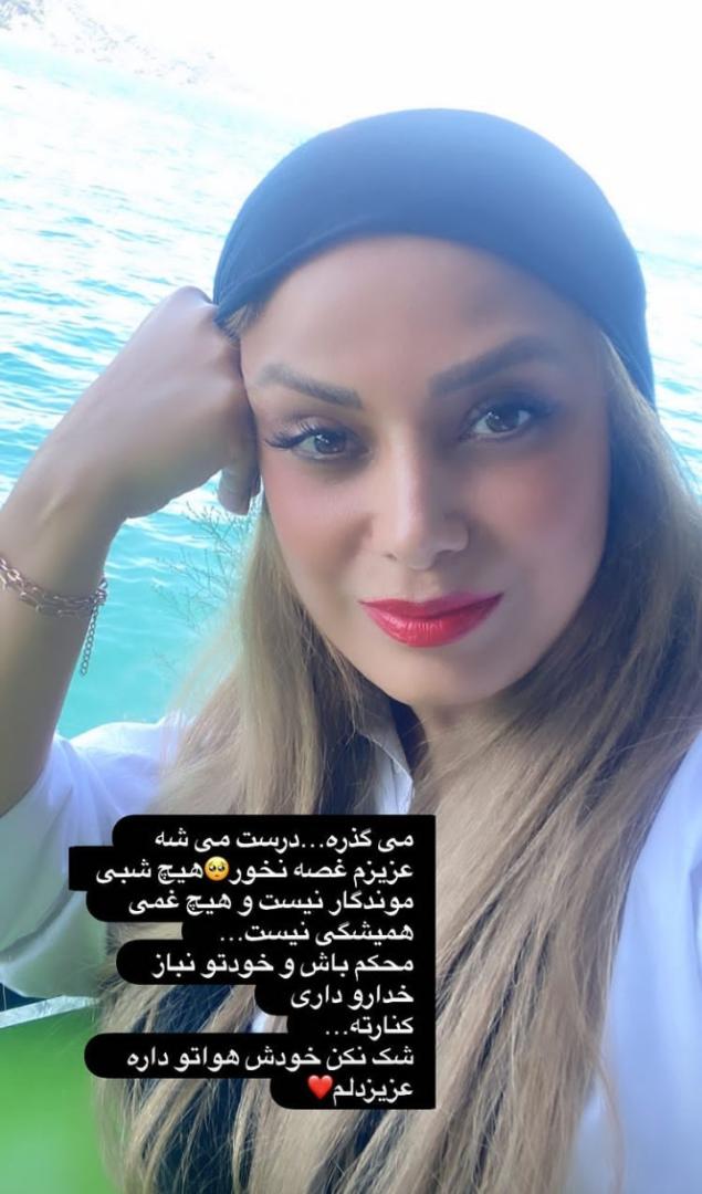 او با انتشار عکس های زیر نوشته است: می گذره درست می شه عزیزم غصه نخور هیچ شبی موندگار نیست و هیچ غمی همیشگی نیست محکم باش و خودتو نباز خدارو داری کنارته شک نکن خودش هواتو داره عزیزدلم