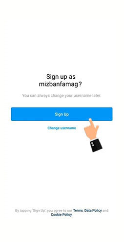 خب حساب شما با موفقیت ساخته شد و اینستاگرام در این بخش از شما میخواهد نام کاربری خود را تأیید کنید یا در صورت نیاز آن را تغیر دهید، شما با انتخاب گزینه Sign up نام کاربری را تأیید میکنید و اگر دوست داشتید آن را تغییر دهید گزینه Change username را انتخاب میکنید؛ یادتان باشد شما هر زمان که دوست داشته باشید میتوانید نام حسابتان را تغیر دهید.