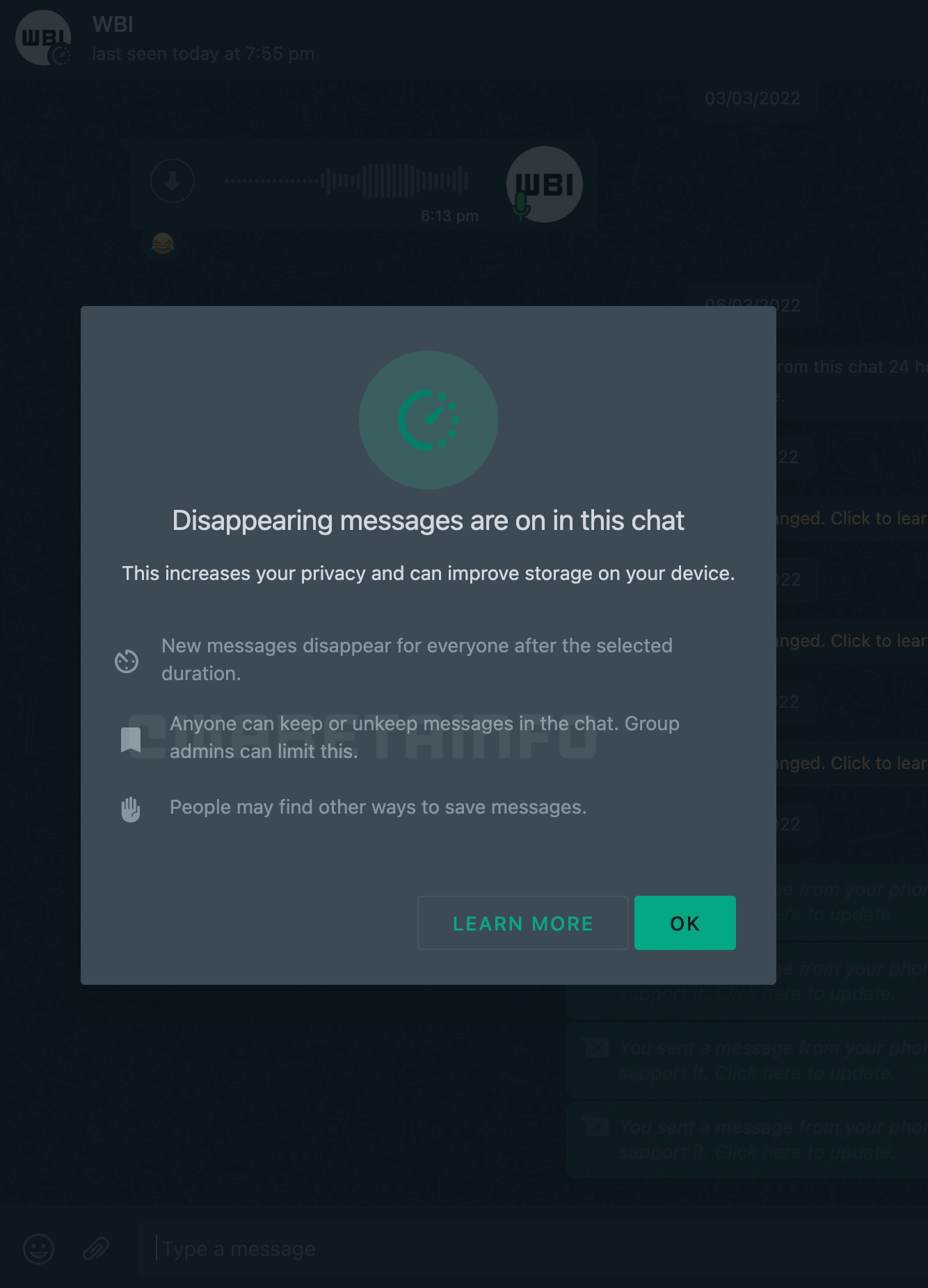سیستم پیام رسان متا، واتساپ در حال سرویس دهی به عملکردی است که به مشتریان امکان میدهد پیامهای ناپدید شده را پس از انقضای آنها نیز حفظ کنند.