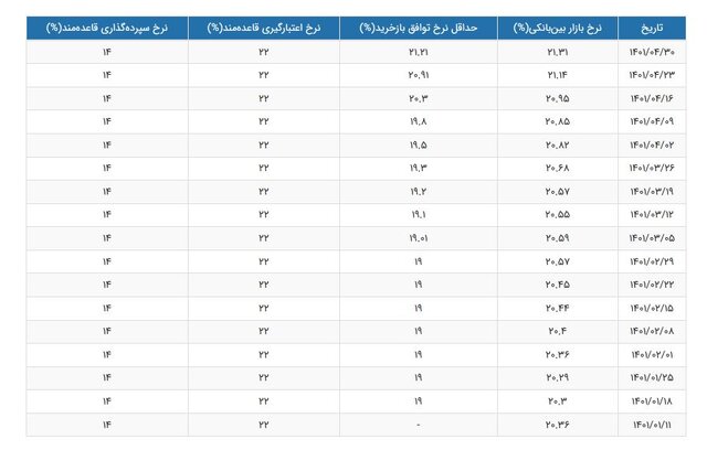 در ادامه میتوانید تغییرات نرخ سود بین بانکی از ابتدای سال جاری تاکنون را مشاهده کنید: