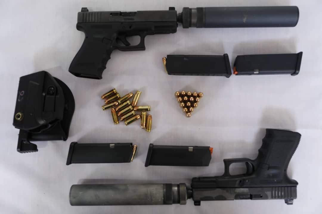 ۲/۶- ۴ قبضه سلاح کمری ویژه همراه با صدا خفه کن و تعداد زیادی فشنگ مربوطه.