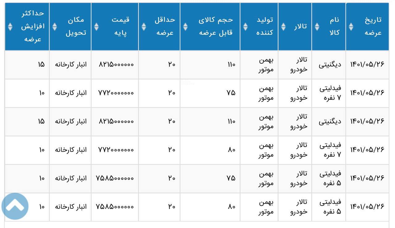 به گزارش سایت طلا،براساس اطلاعیه عرضه بازار فیزیکی بورس کالا، ۲۶ مرداد ماه ۳۵۰ دستگاه فیدلیتی و ۲۵۰ دستگاه دیگنیتی متعلق به گروه بهمن موتور راهی تالار صنعتی میشود.