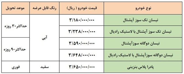یادآوری میشود که تعداد زیادی از وانت نیسانهای تکسوز و دوگانه سوز آپشنال شرکت زامیاد (زیر مجموعه گروه خودروسازی سایپا) در سطح قیمتی ۲ به علت عدم مطابقت با استانداردهای لازم، در پارکینگهای این شرکت انبار شده و اطلاع دقیقی از ترخیص آنها در دست نیست.