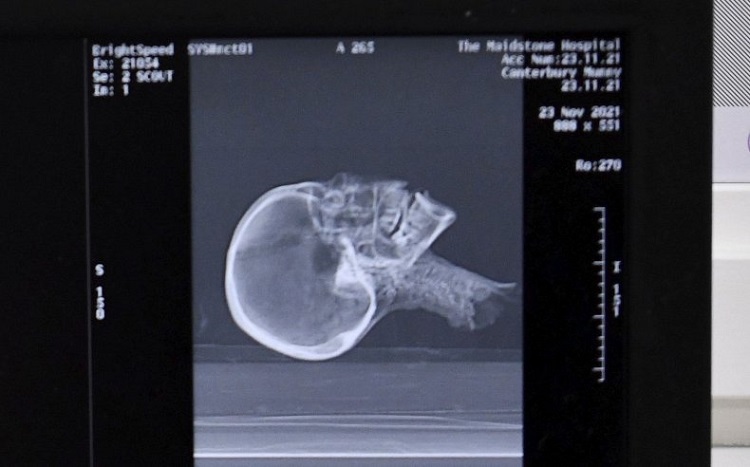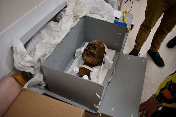 این سر مومیایی شده برای بررسیهای بیشتر به موزه و دانشگاه کانتربری سپرده میشود تا اطلاعاتی در خصوص هویت و منشاء آن بدست آید. در ابتدا این سر مومیایی شده تحت آزمایش اشعه ایکس قرار گرفت و مشخص شد که سر متعلق به یک زن بالغ است، اما برای تأیید و کسب اطلاعات بیشتر تصویربرداری سی تی اسکن نیز لازم بود. به گفته محققان، نتایج اولیه سی تی اسکن، که در بیمارستان Maidstone انجام شد، نشان داد که این زن در حدود ۲۰۰۰ سال پیش سربریده شده و خاستگاه آن نیز از مصر باستان بوده است.