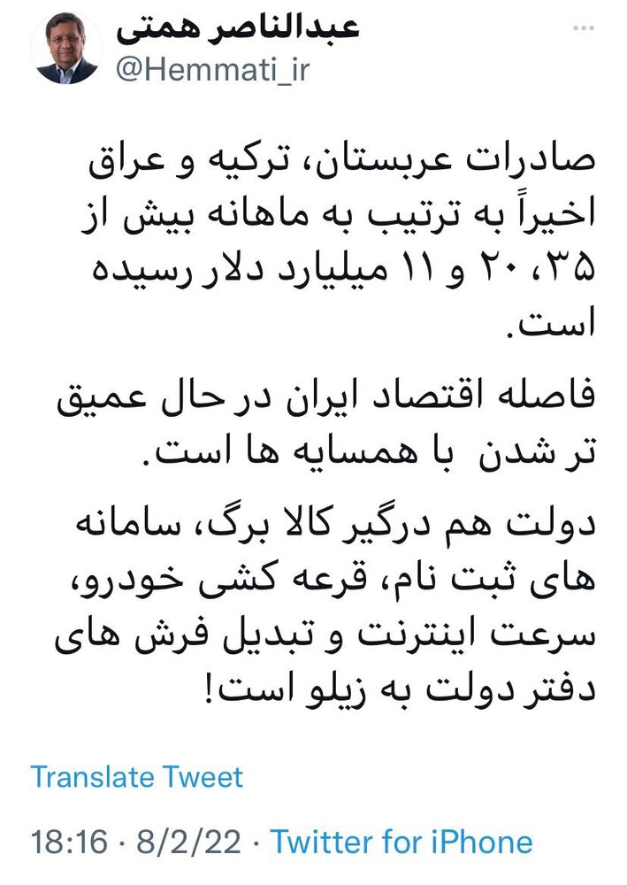 عبدالناصر همتی، رئیس سابق بانک مرکزی نوشت: