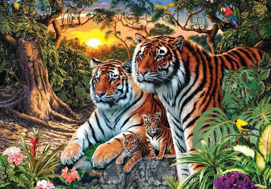 پیدا کردن دو ببر اول راحت تر است. اینها در جلو تصویر هستند.