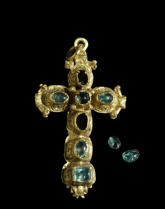 آنها همچنین یک گردنبند با یک طلسم طلایی از صلیب سنت جیمز را پیدا کردند. این یافته با نظم نظامی-مذهبی سنت جیمز مرتبط است که اعضای آن از زائران محافظت میکردند و در تجارت دریایی اسپانیا شرکت میکردند.